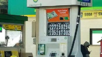 在紐華克一個英資油店,昨日的普通級汽油,現金價為每加侖2.27元,信用卡價為每加侖2.35元;銀級汽油,現金價為每加侖2.59元,信用卡價為每加侖2.67元;特級汽油,現金價為每加侖2.97元,信用卡價為每加侖3.02元。