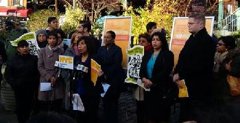 消費者事務局、市長辦公室移民事務專員和團體「走通紐約之路」代表一起,在皇后區新移民集中區傑克遜高地,向來自各地的移民介紹新政。