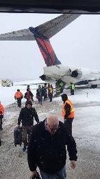 在底特律機場,一架飛往紐約水牛城的達美航班滑出了冰雪覆蓋的跑道,但幸運的是沒有造成人員受傷事故。預計底特律週日及週一的降雪可達10吋,芝加哥也會面臨10吋降雪。
