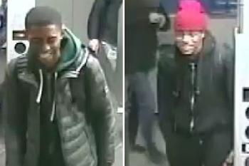 據警方消息,嫌犯之一為非裔男性(圖右),16歲左右,身高約為5呎5吋,體重120磅左右,帶著紅色針織帽、穿著黑色夾克衫、黑褲子和紅運動鞋,背著一個背包。最後被目擊時正通過地鐵閘門進站。另一名嫌犯同樣為非裔男性(圖左),年齡、身高體重於前者相似。他身穿綠色套頭衫,綠夾克、黑褲子,被背包。他使用的地鐵卡是學生卡。