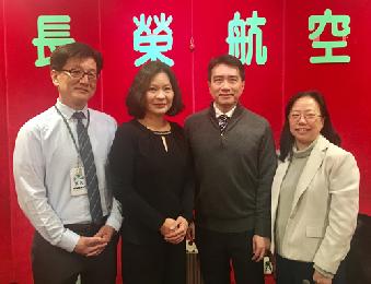 (紐約.羊展恬29日報導)在年終歲末之時,長榮航空美洲總分公司紐約分公司總主任張宇堂(右二)昨日率領客運課課長俞炳亮(左一)、助理副課長林靜娟(右一)等一行,在法拉盛舉行媒體新年慶祝會,向紐約華文媒體祝賀新年。紐約明報行政總裁劉正廷(左二)昨日特別出席活動與長榮航空代表們進行多方的交流。