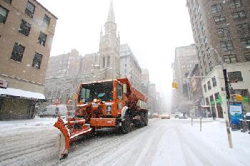 她說,雪天裡最實用的工具之一就是雪鹽,能在華氏24度(約攝氏零下4度)以上的天氣下使冰雪融化。清潔局的撒鹽車會在雪後早、晚7點兩次出動撒鹽車。