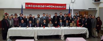 來自美東地區僑領及僑委會僑務職代表日前紛紛出席紐約僑教中心舉行的新舊主任交接儀式,向新任主任黃正杰道賀並歡送卸任主任王映陽。(圖:羊展恬攝)