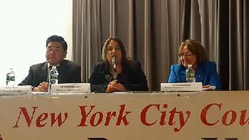 包括市議員顧雅明、皇后區25學區學監狄曼歌(Danielle DiMango)及皇后區圖書館法拉盛分館館長唐詩雅等人昨日親自出席(如圖自左至右,羊展恬攝),並呼籲家中有2013年出生的孩童,都應把握機會,讓自己的孩童受到市府提供良好的幼兒教育福利。這項福利,不但學生費用全免,且提供午餐及零食,最主要的還能讓四歲孩童培養群體生活,及早啟發智慧學習。