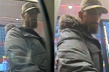 據監控顯示,嫌犯(圖)身高約6呎2吋,體重約190磅,絡腮鬍,身穿毛領棉夾克,戴著一頂軍裝款的帽子。市民如對上述嫌疑人有任何線索,可撥打滅罪熱線: 800-577-TIPS。
