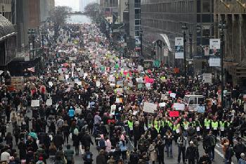 (紐約.留天佑23日報導)美國總統川普就職兩天以來,紐約各界逾萬人,連日集會抗議川普執政,並呼籲民眾在未來通過各種方式,對川普政府施加壓力。