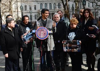(明報2日訊)市議員週三提出一項新法案,建議引入類似安珀警報系統,以捉拿肇事逃逸司機。市議員羅格貴茲(Ydanis Rodriguez,圖,發言者),在死於車禍的主播保羅家人的陪同下,宣佈上述提案。