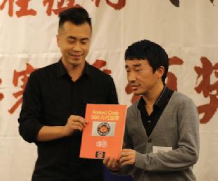 獲得三等獎的28號選手劉凱(右)頒獎當天也同時獲得人氣獎項,由Naked Crab代表Danny Fok(左)提供的500美元禮卡。