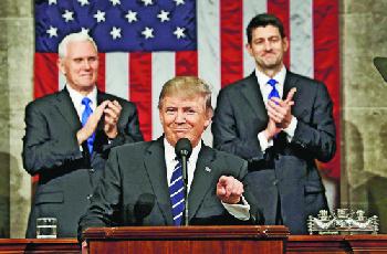 (明報2日訊)針對美國總統川普(圖)週二對國會發表演說,暗示取締無證移民的政策或許會出現轉機,給予數百萬名未犯重罪的無證移民合法地位等口氣,讓多位關心移民問題的紐約社區僑領都表示樂觀其成。