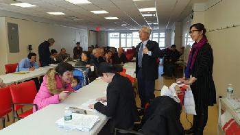 王能表示,日前中領館在法拉盛緬街圖書館舉行的「領事服務進社區暨2017年領事服務月」活動,獲得熱烈響應,吸引近千民眾到場參加,供不應求,顯示僑胞對此服務的需求,該中心日前向領館請求協調,昨日在僑務組領事董海蓉率領下,特別抽空到該中心進行最後一場健康證服務,讓日前無法參加的耆老們可以順利申辦,十分感謝。