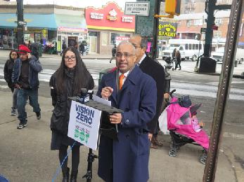 據介紹,「零死亡願景(Vision Zero)」是紐約市長白思豪上任後成功推動降低交通事故計畫後在2017年1月宣佈將在未來5年增加4億元經費繼續推動紐約市交通安全的計劃,包括在全市五區的高危十字路口增建和拓寬行人道、安全島和單車線,以降低撞擊事故的風險和死亡率,維護民眾的人身安全。