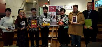 經文處徐儷文大使、紐文中心主任游淑靜等人昨日出席記者會,向媒體介紹兩位青年藝術家及其作品。希望此次國際展,協助拓展台灣漫畫家的國際市場能見度,為藝術家開拓美東漫畫市場。