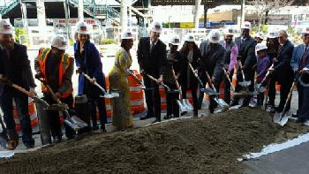 包括紐約市交通局(DOT)皇后區局長葛西雅(Nicole Garcia)、紐約市設計和建設局(DCC)副局長麥克法倫(Eric Macfarlane)、皇后區經濟發展公司及市議員斐洛拉斯考普蘭Julissa Ferreras-Copeland等社區代表昨日齊聚可樂娜廣場工地,為該處重建的文化與休閒廣場舉行破土儀式(圖,本報記者攝)。