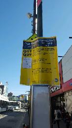 法拉盛市中心巴士站更改停靠站,MTA已在原車站牌張貼地圖告知民眾改點。(圖:本報記者攝)