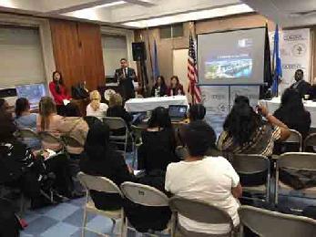 (明報21日訊)為協助皇后區高中學生家長瞭解大學選校及申請程序,皇后區區長凱茲辦公室家長顧問委員會昨日舉行會議,邀請多位對申請大學有經驗的專家到場向家長詳細解說其中包括州長葛謨日前簽署的有關紐約州市大學免學費的法令,吸引許多家長到場聽講(圖,皇后區長辦公室提供)。