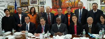 (明報22日訊)為鼓勵紐約州小商業拓展對外貿易,紐約州府全球貿易輔導基金辦公室主任魯茲Lennox W. Ruiz昨日在州長辦公室亞裔事務主任孫雯的陪同下,前往華埠紐約中華總商會拜會,受到商會執行長于金山、會長李可喬等眾多商會成員的熱烈歡迎(圖)。