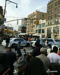 (明報28日訊)法拉盛市中心昨日發生一起搶劫案件,3名非裔青年在大白天向一家位於緬街近羅斯福大道的華人飾品店行搶,該店老闆及老闆娘因追趕搶匪卻遭到匪徒打傷,老闆娘被匪徒擊倒在地受傷,手摀面部。多名路人見狀報警後,109分局警察和救護車隨後趕到,將受害者送往附近醫院救治。
