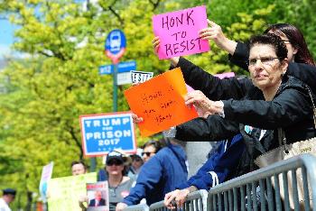 (明報5日訊)美國眾院週四通過一項廢除並取代「奧記健保」的法案之後,當日有300多名抗議者走上紐約街頭,對計劃到訪的總統川普高聲抗議。