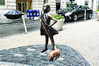(明報1日訊)今年3月,美國華爾街地標《華爾街銅牛》雕像的對面,被放置了一座《無畏女孩》(Fearless Girl)雕像,宣稱象徵性別多樣化。做法引起銅牛創作者、意大利藝術家莫迪卡(Arturo Di Modica)不滿,他認為公牛在1987年股災後創作的原意是帶出自由、力量的正面信息,而非無畏女孩針對的「男性主導資本主義對女性的壓迫」,無畏女孩是對其作品的侮辱。