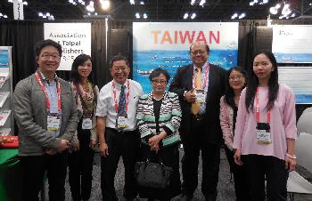 本次台灣主題館由文化部贊助、駐紐約台北文化中心協辦及台北市出版商業同業公會主辦,帶領來自台灣的30家出版社,精選包含文學、漫畫、童書、繪本、語言學習等160種書籍,以「文字的力量」為題,讓台灣優秀的文化及創作能在世界舞台發光發熱。圖為台北市出版商業同業公會盧欽政理事長(左三)、台北市出版商業同業公會周均亮副理事長(右三)、美國在台協會陶令瑜經理(左二)和駐紐約台北文化中心游淑靜主任(中)。