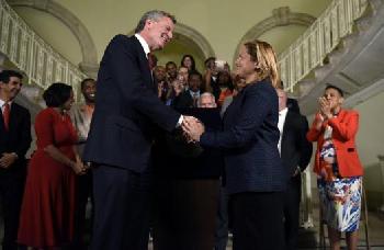(明報5日訊)紐約市政府與市議會今年提前就財政預算案達成協議,預算案撥款資助新移民「成人識字項目」,也會加大重修路面的規模。紐約市市議長馬麗桃、市議會財政委員會主席斐瑞拉絲、市長白思豪共同宣佈,已就2018財年預算達成一致。