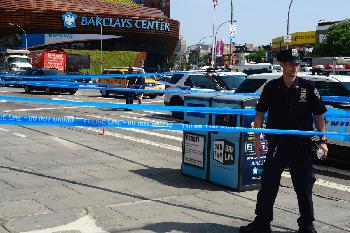 (明報15日訊)據警方消息,布碌崙區巴克萊中心(Barclays Center)附近,昨日在一名男子遭到槍擊後引發騷亂,路人在街上尋找掩護。案發在下午2點左右,3名男子在亞特蘭大夾弗萊布許(Atlantic and Flatbush avenues)的亞特蘭大購物中心(Atlantic Center Mall)發生爭執,而後其中1人開火。