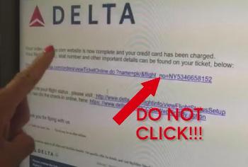 如圖所示,乍一看像是從達美航空公司(Delta Airlines)發來的通知旅客下一航班安排的郵件,即使是沒有旅行安排的人收到郵件,也會好奇郵件內容,點開鏈接。然而,儘管看起來像是從大型航空公司發出,但實際上這只是一個隱藏了特洛伊木馬病毒(Trojan horse)、用來竊取個人信息的郵件。
