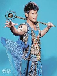 古天樂的披肩似布袋,“麥克風”則似沙僧的月牙鏟。(圖:香港明報)