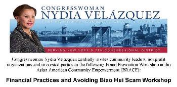 (明報31日訊)針對華裔社區近期多宗「標會」案件,國會議員維樂貴絲將於7月31日(星期一),與地方檢察署及警方,一起在布碌崙舉辦防止詐騙的講座。活動地址在美國亞裔社團聯合總會,618 62nd Street, Brooklyn, NY 11220。時間:下午1時。