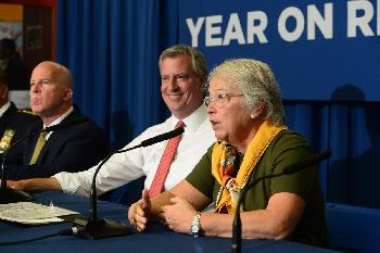 白思豪表示「這些數據表明了城市學生更加安全。白思豪還說「我們已經看到了市教育局和紐約市警總局的努力,他們各個方面的努力讓我們的學校更加安全。」