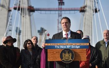 (明報25日訊)州長葛謨於週四早晨為新塔潘吉大橋(New Tappan Zee Bridge)第一個完工的橋面剪綵,這座耗資39億元的橋樑將以葛謨的父親命名。