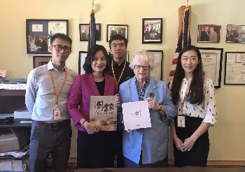 行政總裁劉正廷攜新媒體團隊與華人社區熟悉的老面孔、彼此也是舊識的紐約州參議員史塔文斯基(Toby Ann Stavisky)會面,大病初癒的她看上去精神不俗。