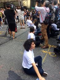 抗議遊行自第五大道南下,逐漸增至約400人。部份遊行者手把手坐在人行道上哭泣。其他遊行者則站在一旁邊揮舞著標識,邊喊著口號:「無證客——無畏。」
