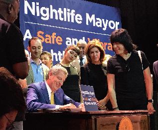 (明報21日訊)市長白思豪(圖)於週二晚在布碌崙布希維克(Bushwick)社區簽署法令,正式確認設置監管市夜生活的新辦公室。在市議會成員,各俱樂部老闆及鼓手瑪奇雷蒙的簇擁下,白思豪完成了「夜生活辦公室」新法令的簽署。