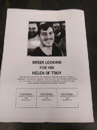 這張海報上說,薩科格羅是一名來自希臘塞薩洛尼基(Thessaloniki)的學生,正在尋求一個女友。「這不是一個玩笑。」上面寫著「我不喜歡約會軟件,也厭倦了一個人的生活。希望能夠遇到那個特別的人,一起分享瘋狂的人生旅程」