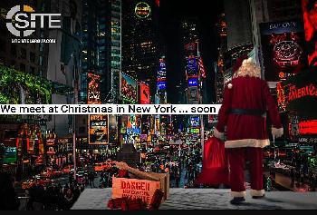 (明報28日訊)恐怖組織伊斯蘭國(ISIS)盲信者最新發佈一張宣傳照(圖),威脅稱將於耶誕節對紐約發動恐怖襲擊。