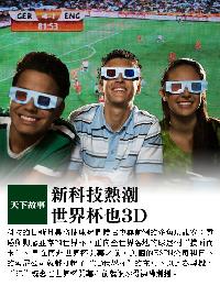 早在南非世界杯開幕之前,美國的ESPN公司和日本的索尼公司就都打起了“3D世界杯”的主意。以此為契機,“3D”概念在世界杯開幕之前就被炒得沸沸揚揚。除了美國和日本以外,意大利、韓國、墨西哥等地也都推出了3D影院,一時間,3D大旗插滿全球。
