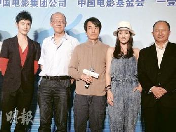 陳喬恩伙拍黃曉明,加上吳宇森與張家振(左2)這個黃金組合,他們的合作成果令人期待。(圖:香港明報)