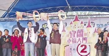 而國民黨主席馬英九週三則第9次赴宜蘭陪呂國華“掃街”拉票,展開最後72小時的護盤行動,民進黨主席蔡英文週三也到宜蘭助選,這是馬英九、蔡英文前晚在彰化首度“雙英對決”後再度相逢,而謝長廷、蘇貞昌、呂秀蓮、游錫等民進黨天王週三晚上也同時在宜蘭站台助選,令超級戰區的宜蘭縣選情沸騰。(明報新聞網)