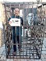 (中國)內地著名異見人士胡佳11月30日在其Twitter帳戶上展示多幅將身穿囚衣的自己關進籠子裡的照片,鐵籠裡面除了胡佳自己,還有一張異見者王炳章的大幅人像圖畫,寓意兩人同囚。