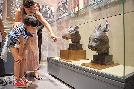 (中國)流落海外多年的清代圓明園12生肖獸首中的青銅鼠首(左)和兔首(右),7月18日在北京中國國家博物館首度公開展出,吸引大批遊客前往參觀拍照。