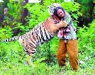 (印尼)人們天生都有喜歡小動物的偏好,但要做到4年如一日地與高大威猛的老虎生活在一起,多數人還是會驚出一身冷汗。據英國《太陽報》的一份採訪視頻顯示,居住東爪哇瑪琅市的31歲男子阿布杜拉·索勒,卻能無所畏懼地將一頭名為“木蘭”的雌性孟加拉虎從小一直養到4歲。