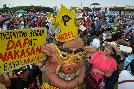 (菲律賓)昨天是菲律賓英雄節,社會運動、天主教及學生團體在首都馬尼拉黎薩公園發動示威,要求政府廢除被指為貪污根源的“肉桶”制度,同時也提醒總統小阿奎諾勿為連任而修憲。圖為示威者帶著丑化小阿奎諾的豬頭面具示威。