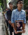 (越南)越南民眾週日列隊於武元甲居所外,等候入內吊唁,其中一人手捧著英雄遺照,神情肅穆哀傷。越南上週六宣佈,將為獨立英雄武元甲將軍舉行國葬,為他訂定2天國殤日。聲明中說,武元甲遺體12日將在河內國家殯儀館供人瞻仰,次日安葬。