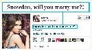 (俄羅斯)斯諾登在莫斯科機場滯留,成為當地政界製造花邊新聞的對象。俄羅斯情報機構前女僱員、2010年美國間諜醜聞被告之一的查普曼,在社交網站Twitter向斯諾登提出求婚,她說:“斯諾登,你願意娶我嗎?美國國安局(NSA),你願意照顧我們的孩子嗎?”